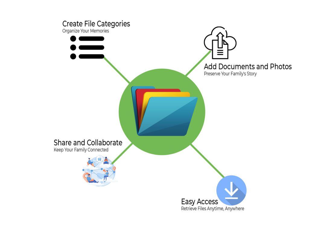 You can easily upload, organize, and access important information anywhere. Our platform ensures that your family's valuable information is securely stored and easily retrievable
