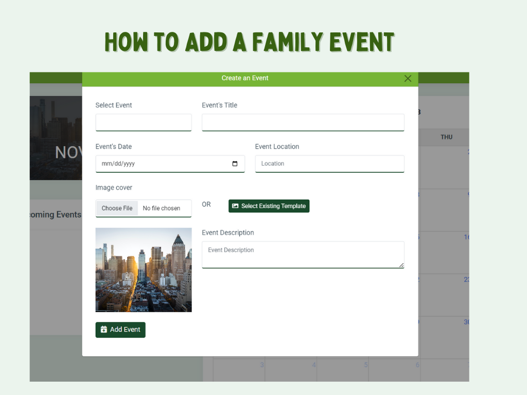 Adding family events is a wonderful way to preserve and celebrate your heritage. These events, whether birthdays, anniversaries, reunions, or significant milestones, help you keep cherished memories and connections that contribute to your family’s story.